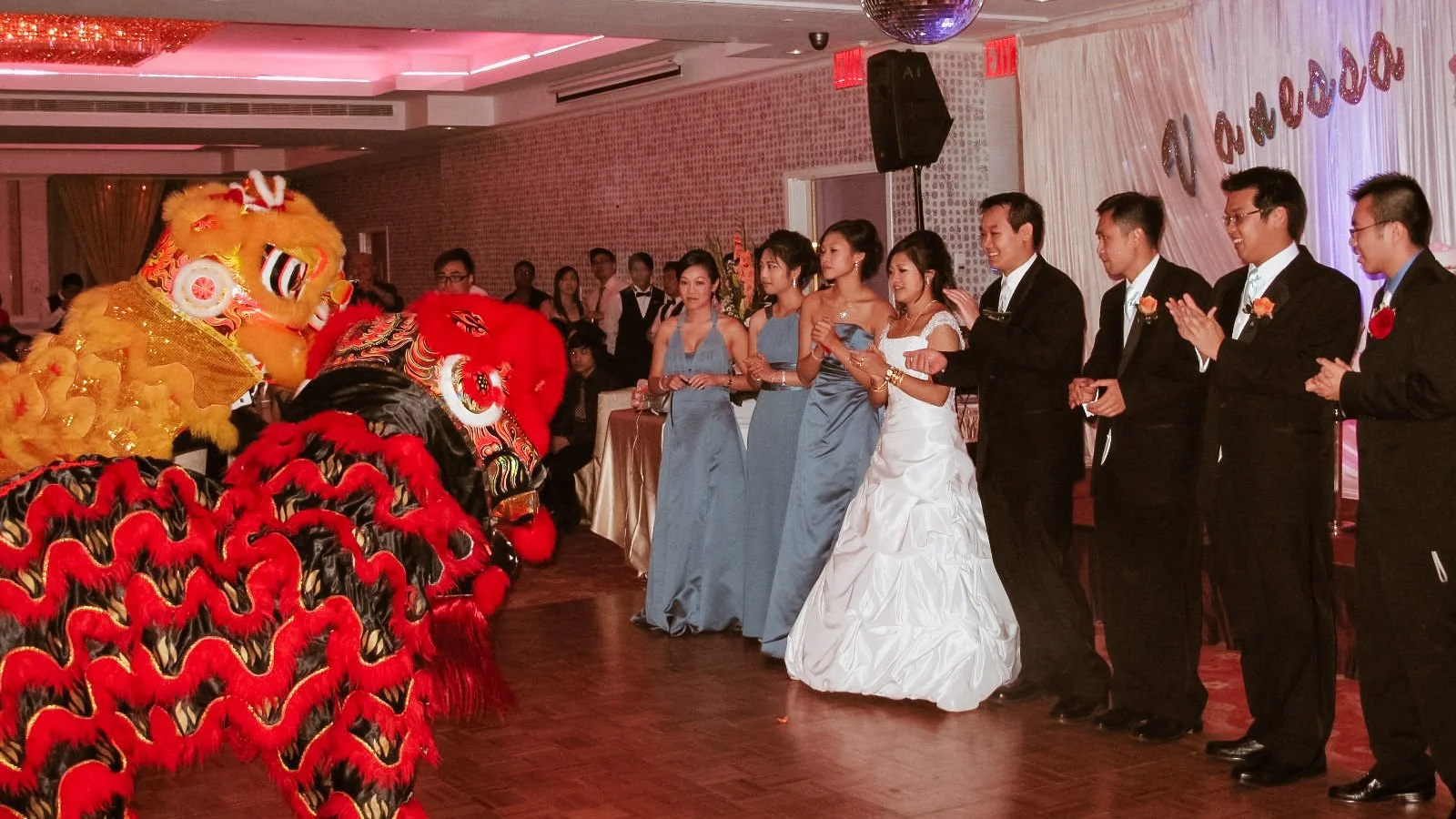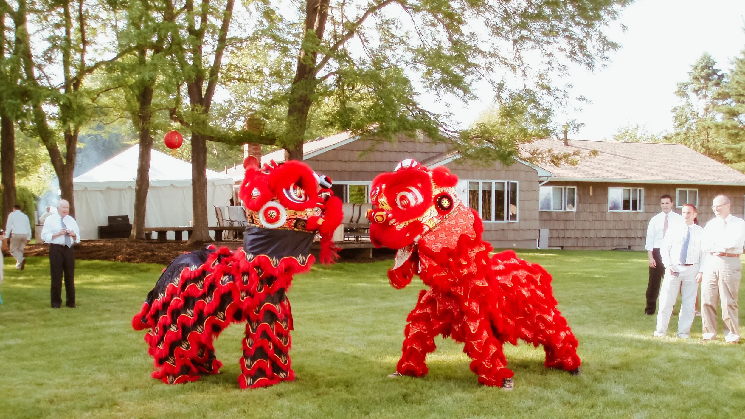 Lions are auspicious and cement the success and joy of a couple’s union. We identify the unique needs of each couple with integrating the traditional lion dance into their wedding day or after wedding party. Our team has performed at wedding ceremonies, tea ceremonies, exchanging of the vows, cocktail hour and wedding luncheons or dinners. Our wedding performances have included venues at The Mansion at Oyster Bay, Liberty House Restaurant in Jersey City, New Jersey, The Manor in West Orange, New Jersey, The Yale Club, Mudan Banquet Hall in Flushing, Queens and numerous catering halls on Long Island, New Jersey and Westchester.